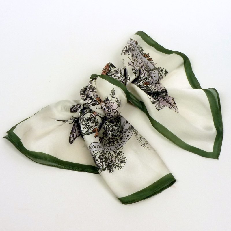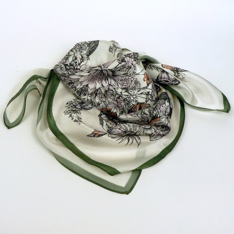 Apaszka jedwabna kwiaty i motyle