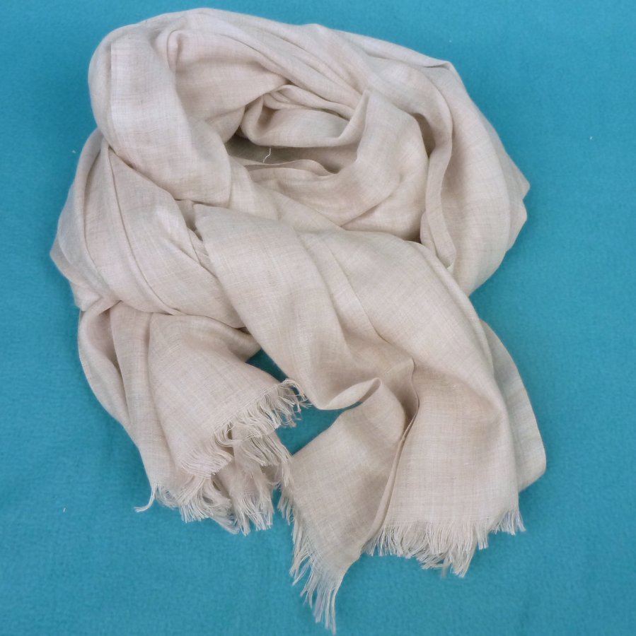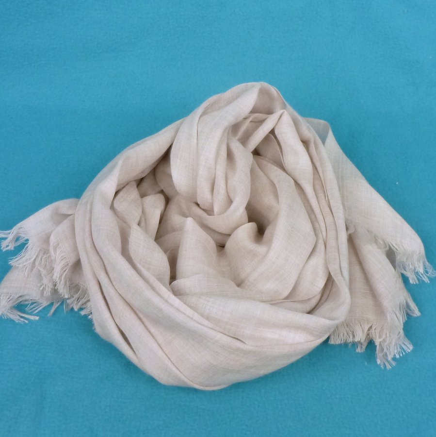 Duży szal do codziennych stylizacji, bardzo lekki, gładki i miły w dotyku. Utrzymuje się na swoim miejscu, nie "ucieka". Delikatny, cienki dzięki bambusowi i wiskozie. Do noszenia przez większość roku.
