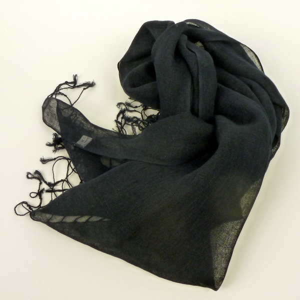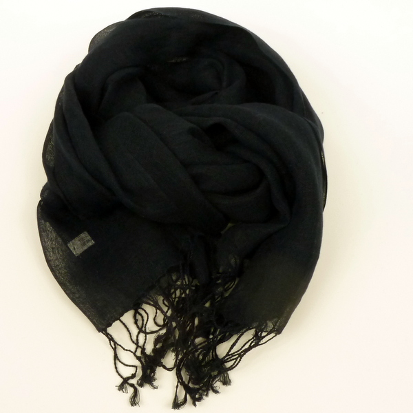 Szal damski z lnu czarny przypadnie do gustu osobom lubiącym zdecydowane kolory, a zwłaszcza czarny, uważany za uniwersalny, elegancki. Jeśli kochasz czerń i naturalne tkaniny to jest szal dla Ciebie.